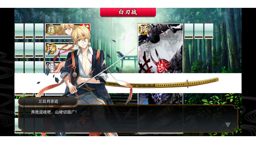 上线给剧情刀到了,呜呜,看爷爷说真是个断刀的好时候,我就一惊,真的给我吓到了,内心秒飘过(没有我的允许你怎么能私自断刀😭,三明没有你我怎么活啊😭,你不要自我了断啊😭) (总结:剧情很好的用三日月刀穿了我的刀,回头就送爷爷出去开导内心🙏)