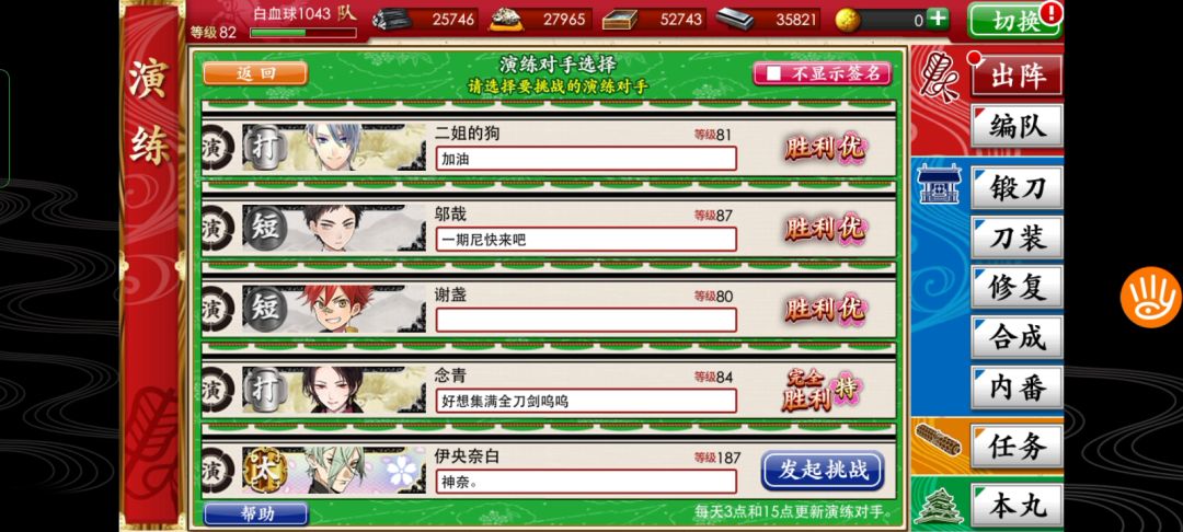 因为我本丸的三明完全是跟着极短们混到99的,而被被一直是打刀队队长,根本没有一起出阵过。所以总有种这两个人背着我发展出来不得了的友谊的感觉