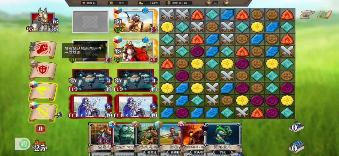 总之,配BD的时候还有点意思,等无视任何属性怪物,所有大小战役全一回合结束甚至还考虑到了卡死几率的时候,就只剩爬层的无趣了。训练?不存在的。主被动?不存在的。卡牌?不存在的。全员六张卡牌,上阵就四个,食尸鬼和高级食尸鬼,吸血鬼和高级吸血鬼,全部融合合成人,每次受伤至多承受10伤害,攻击减2。食尸鬼因为法师职业的原因进场就能发动技能,全体又都吃暗属性棋子,所以全员的技能都是免费的。选吸血鬼的