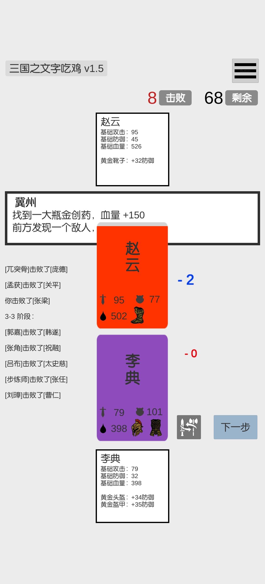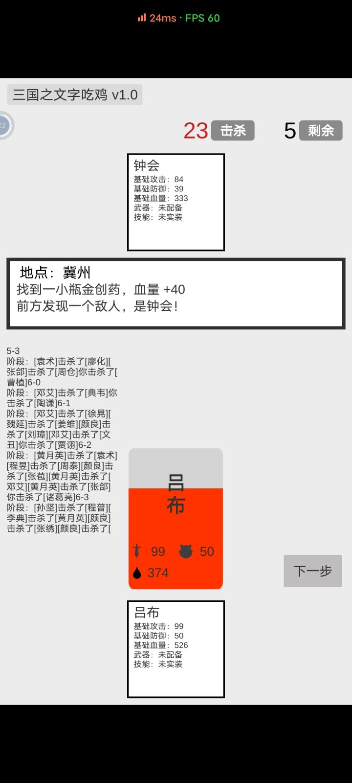 上手难度不高,多摸索几次基本就能吃鸡了。单纯从策略来看,开局无脑选高攻或高防,我玩了3局就吃鸡了,选的是高攻(是否有高防未测试),加武器130,打到33防的装备后无脑低收益,没有低收益后就无收益,最后吃鸡。伤害公式很简单,攻击数字-对方防御数字=伤害,扣血公式也一样,所以自身40左右的防穿戴33防装备,打攻击数值在73以下的怪无伤!