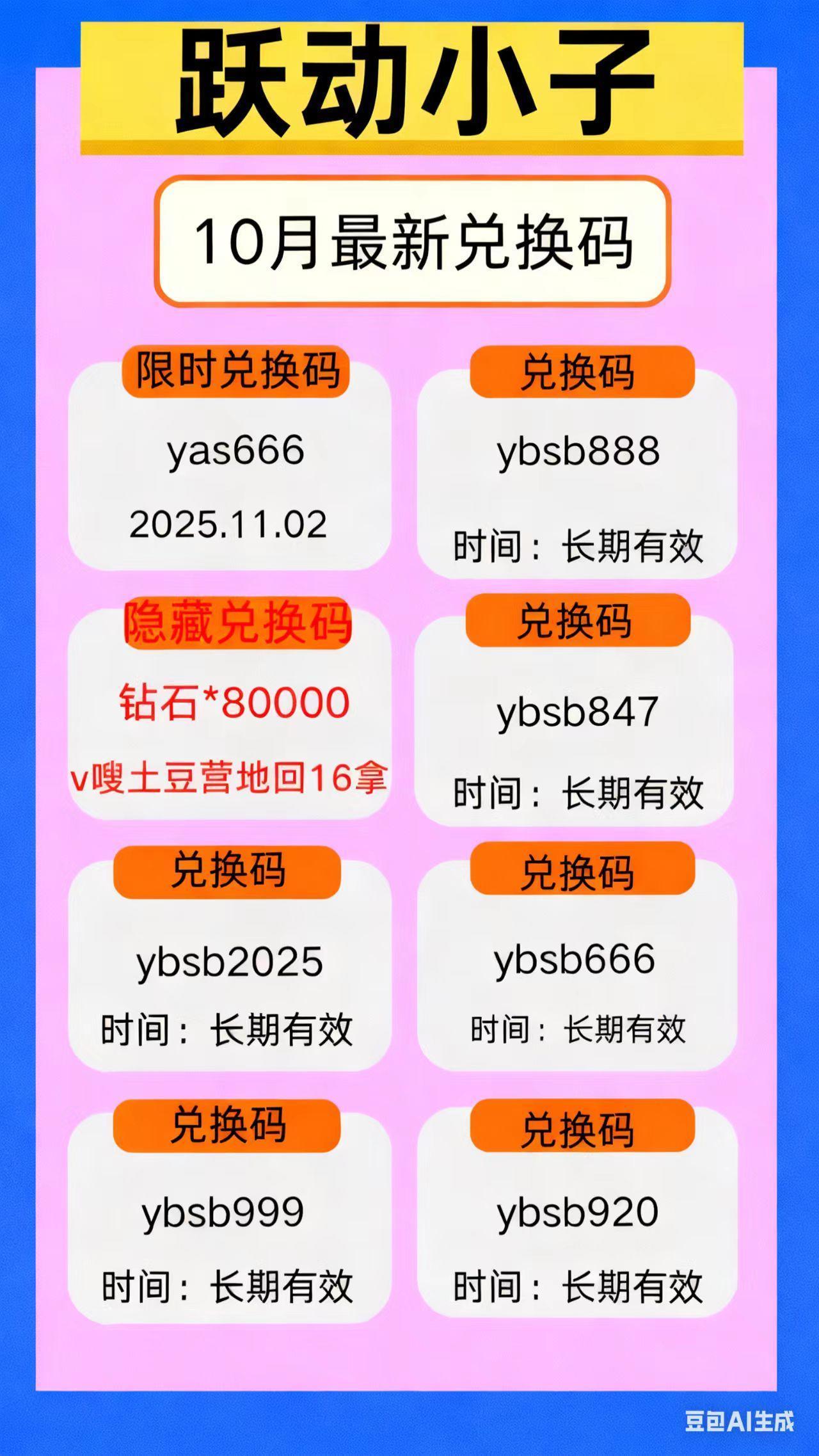 跃动小子10月新增兑换码yas666时间2025年11月2号ybsb847其他兑换码给大家整理在下方了#跃动小子 #跃动小子兑换码 #跃动小子攻略