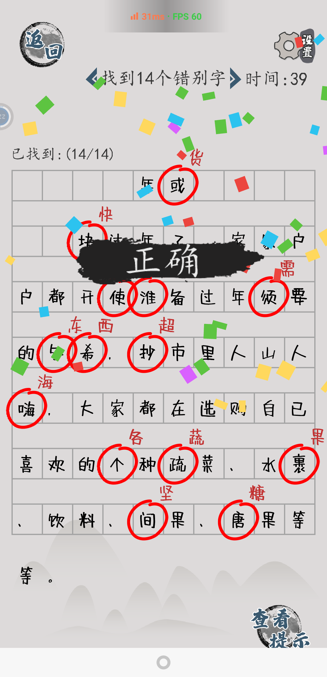 不过问题挺大的,作为汉字类的游戏,文案,光我找就找出来了三个,比较基础的自己的己和已经的已不分,还有古诗词那边串联的句子改字的,似改的是。