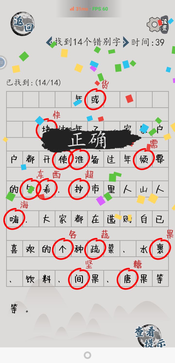 找字部分有些挺勉强的,希望判定更严谨一点不要看着像就算是,有些字的笔画是点就不能认为一捺=一点