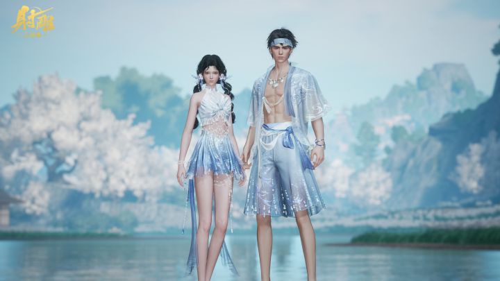 有人问雕子:明明是古风游戏,为何做出了“现代泳装”?其实不然,古人的夏天,早就把 “亲水” 写成了日常。就像魏晋时人爱 “浮舟泛海”,王羲之在《兰亭集序》里写 “清流激湍,映带左右”,是把山水作衣裳;《清明上河图》里的仕女,会披轻薄纱衣坐在池边,纱料浸了水汽,比纨扇更能驱暑。古人从不是困在形制里的老刻板,而是对 “顺时应景” 的讲究 —— 就像春日簪花、秋日佩叶,夏日自然该有套能追浪、能纳凉的衣