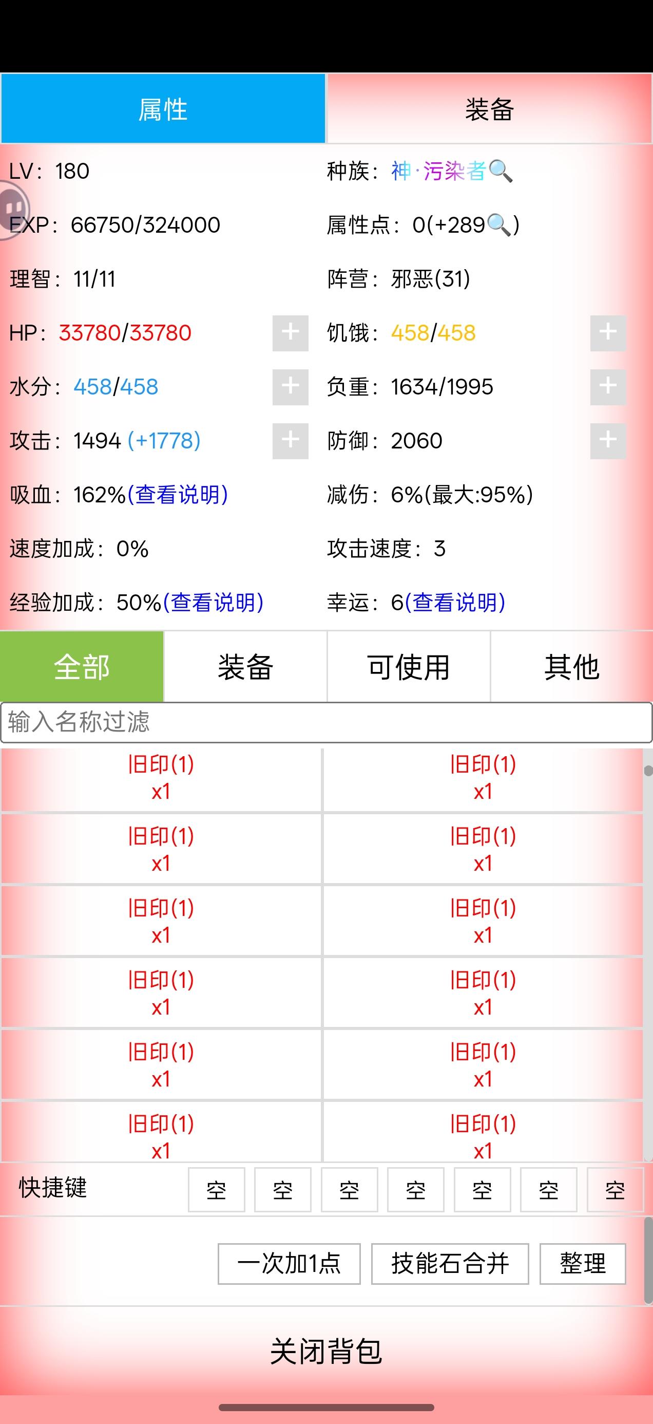 版本:2.73(先别急着更新,新版没法4连登神。)前几天刚解锁超维精灵,马上拿来体验一下,没有一转二转。超维精灵的技能超维计时可以随便跳节日,同样不送东西。当个白板种族升级到100级。做装备,怒浪重皮、龙盾,紫晶狂兽神,属性不够1000不能摧毁神殿,只能先去跑环了。找了挺久遇到两个跑环任务,刷完得到9000善良,换成属性点就是30*9=270,(这是一周目,如果去二周目再用后悔药返回来就可