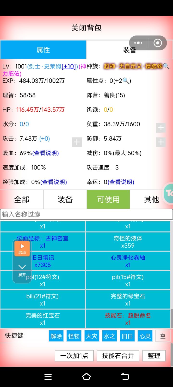 众所周知,超维精灵可以代打登神和超脱。可以帮助一些超脱耗时长的种族来超脱,并且超维精灵自身超脱后的加成能更快超脱,一般情况而言是能省下很多时间的。超脱后可以自定义加点,那么该怎么加点才能更方便来代打呢?所以本帖将来探讨几种加点方案。目前我有2种加点方案。主要思路是,因为打古神和外神,白板种族用通用方法耗时相对于旧日而言不算长,所以在旧日上节省时间即可。通用方法打克苏鲁耗时最长的是跑环刷属