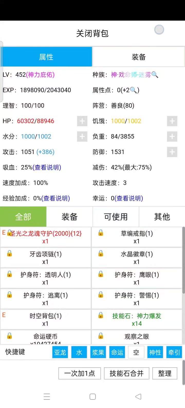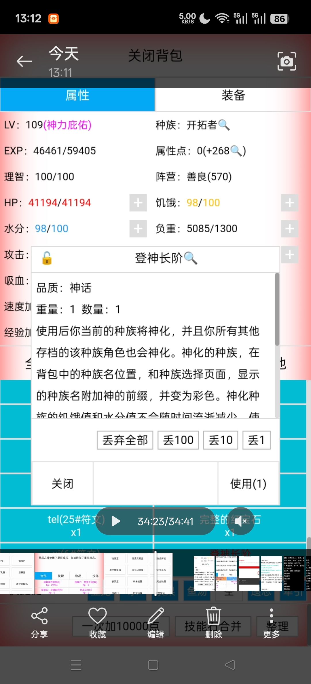 本来是有幸运的,因为要模拟没有幸运怎么爬,所以把幸运改成了0,所以操作不熟练,反复采集了好多次,结果发现材料还是缺,于是干脆先把神打了,先确定爬周目的时间