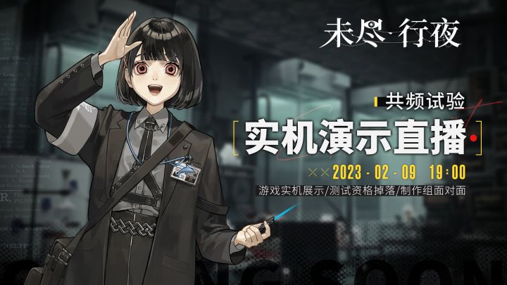 各位馆长候选人:感谢各位候选人对《未尽行夜》的关注与支持,为帮助各位更好地了解游戏内容以及开发现状,我们将于2月9日开启「共频试验」实机演示直播,为候选人们展现更多游戏相关内容。「共频试验」直播时间:2023年2月9日19:00「共频试验」B站直播地址:本次直播将包含:【游戏实机演示】-将由知名up主和制作组一起为候选人们进行实机演示【游戏设定讲解】-制作组将为候选人们讲解游戏设定,带