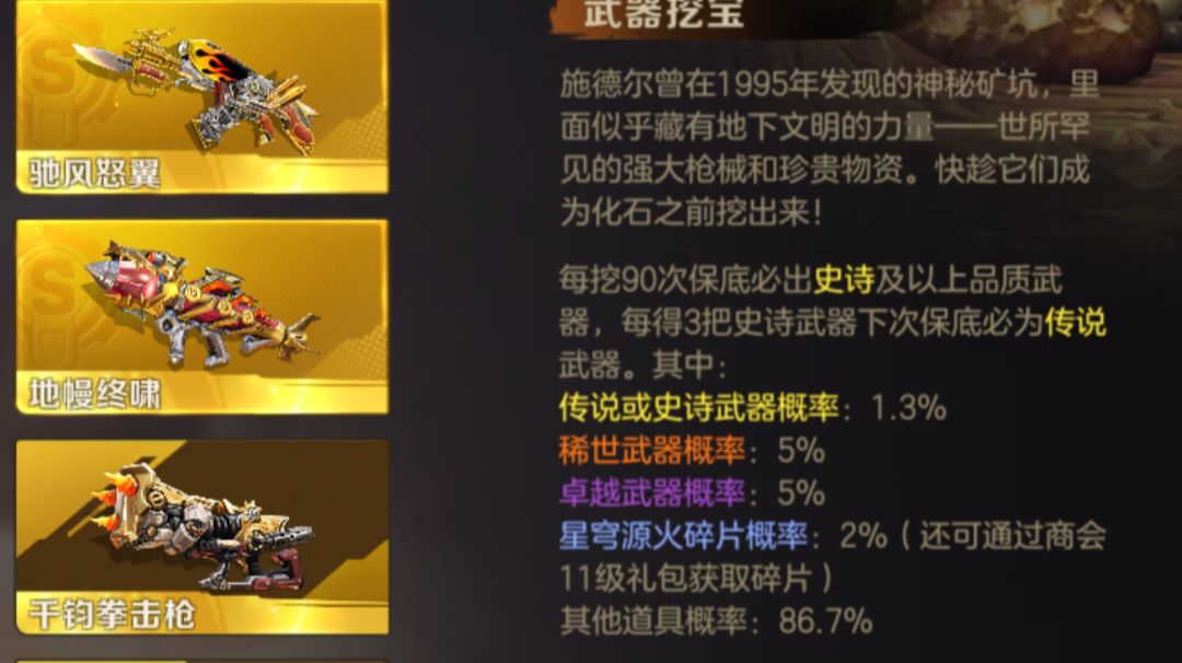 很多宝子们,对挖宝概率望尘莫及,游戏里挖宝是最关键,今天教大家如何提高概率攻略! 很多一次一个挖,一次十个挖,今天挖下明天挖下,概率极低!下面看好如何提高挖宝概率 武器概率分为存五十次一挖,每次十次,概率提高百分之20,或者100次一挖,每次十次提高百分之25,或者1000次一挖,概率提高百分之60,2000次一挖概率提高百分百! 英雄每三十次一挖,提高概率百分之10,每五十一挖概率提高百分之15