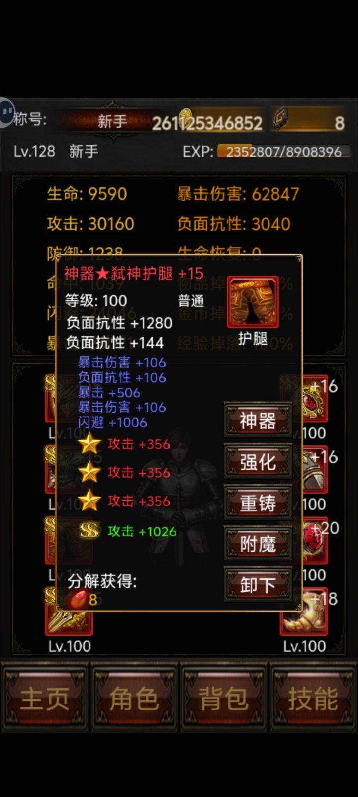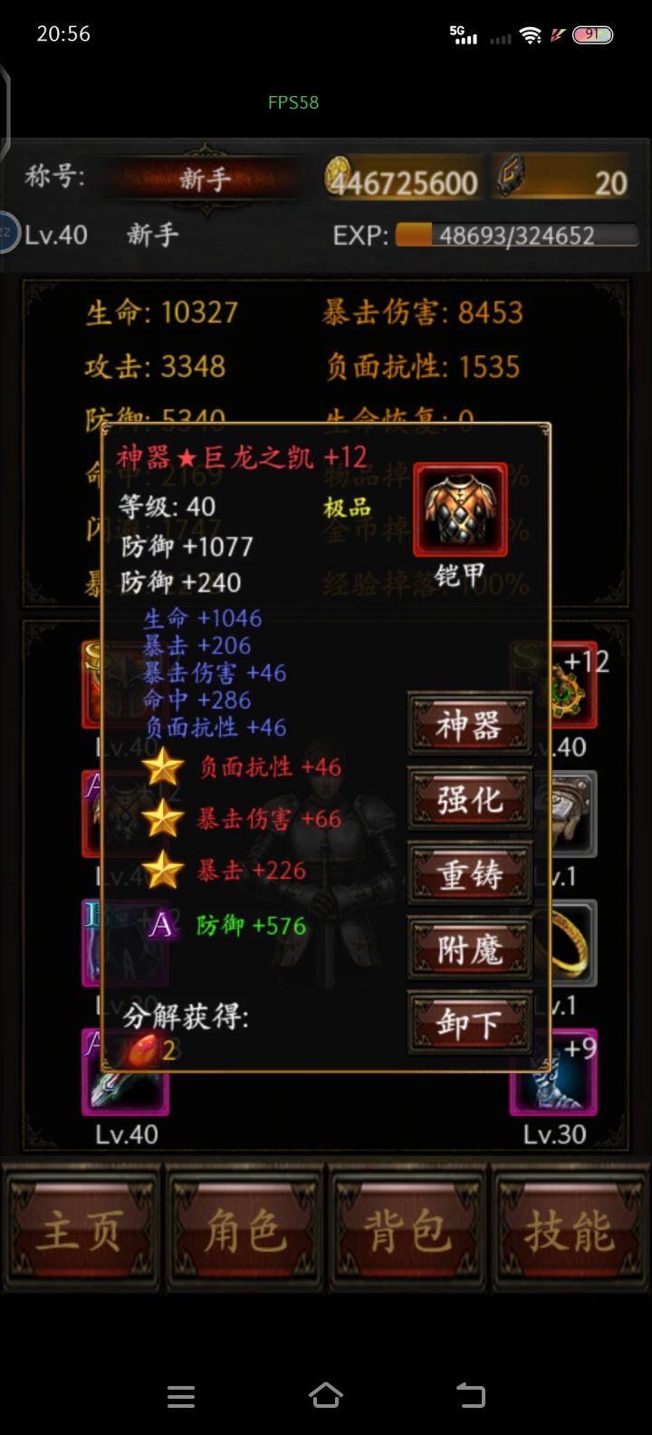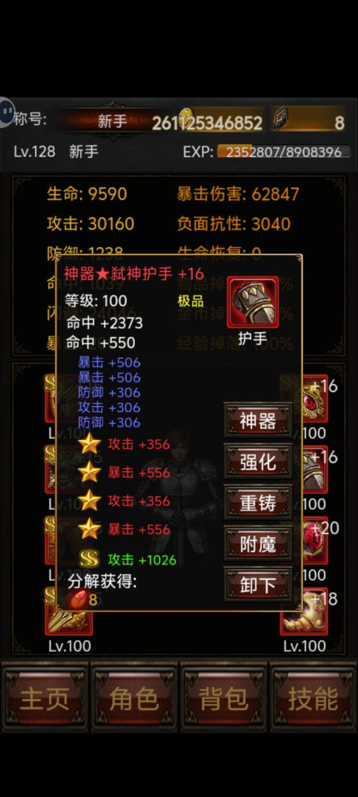 这游戏还是以挂机为主,打造的装备毫无作用,属性只有攻击暴击闪避有用,前期只要堆闪避,可挂副本就行,其余挂低级能秒杀的,多刷卷,左边神器副本出,右边箱子出,注意bug箱子前先把副本卷用完。2万是个零界点,100%暴击100%闪避