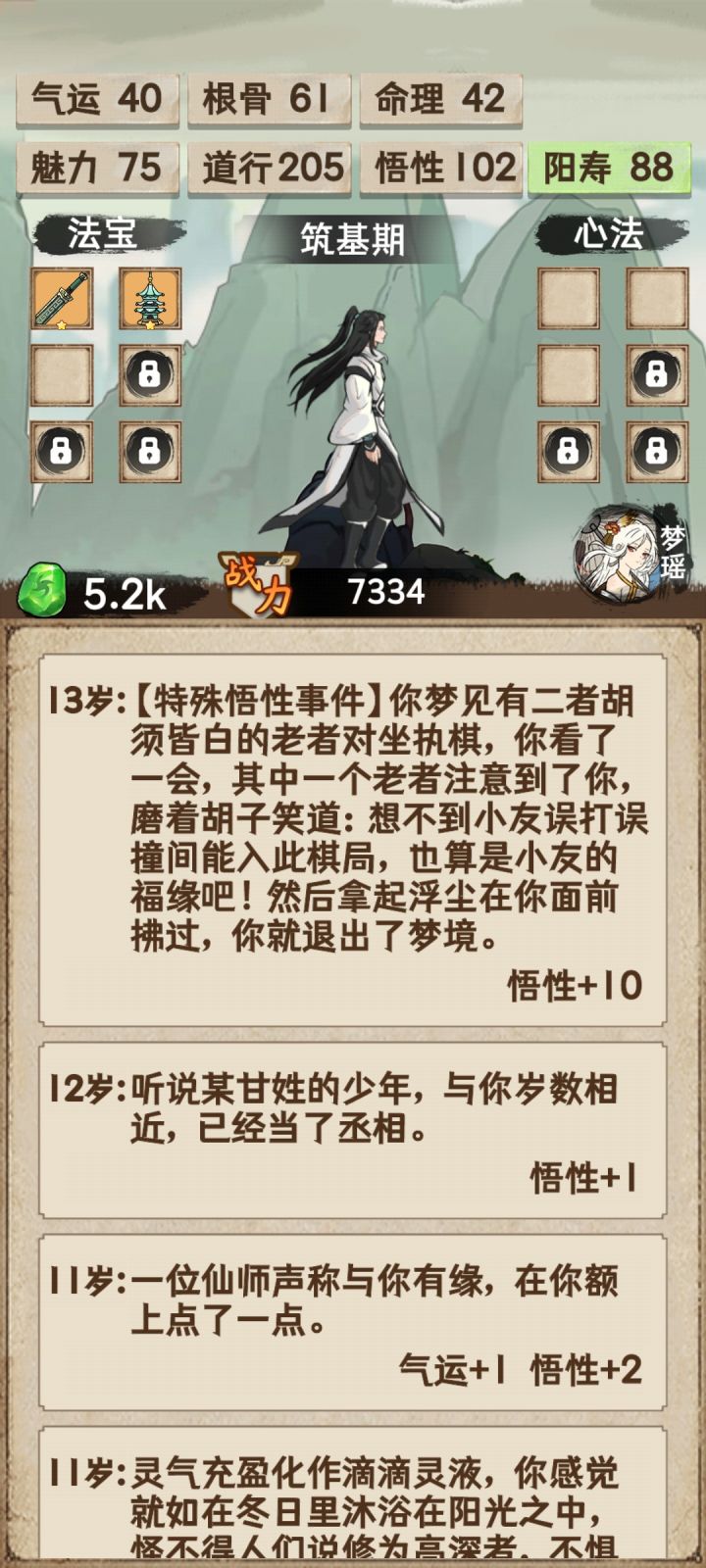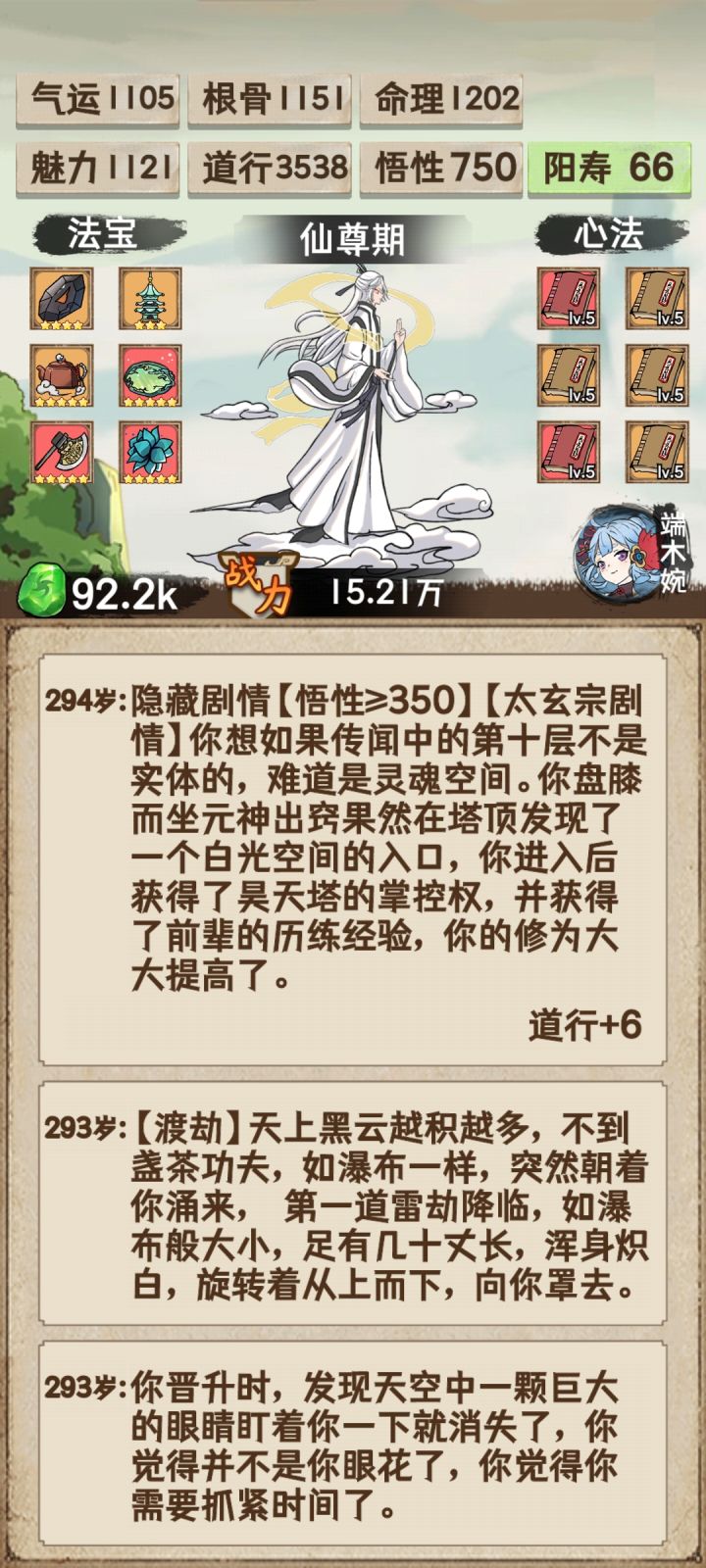 开始属性36气运,道行各一半或者气运20,好像大概率加入隐藏门派,有多属性加成。法宝轩辕+神农,女娲+宝塔,别着急升星,补充法宝优先。功法要求不大,选择多属性加成过渡就行,灵石拿来补属性丹药。筑基期1.1w以上才能突破金丹期,最好卡一下不突破,金丹期之后气运是主要,高会以1.5w以上安稳过渡元婴期,2.7w乱杀各种战斗,返虚期丹药选择轮回丹,其次气运要足够不然在合体期会被一拳打死,在后面