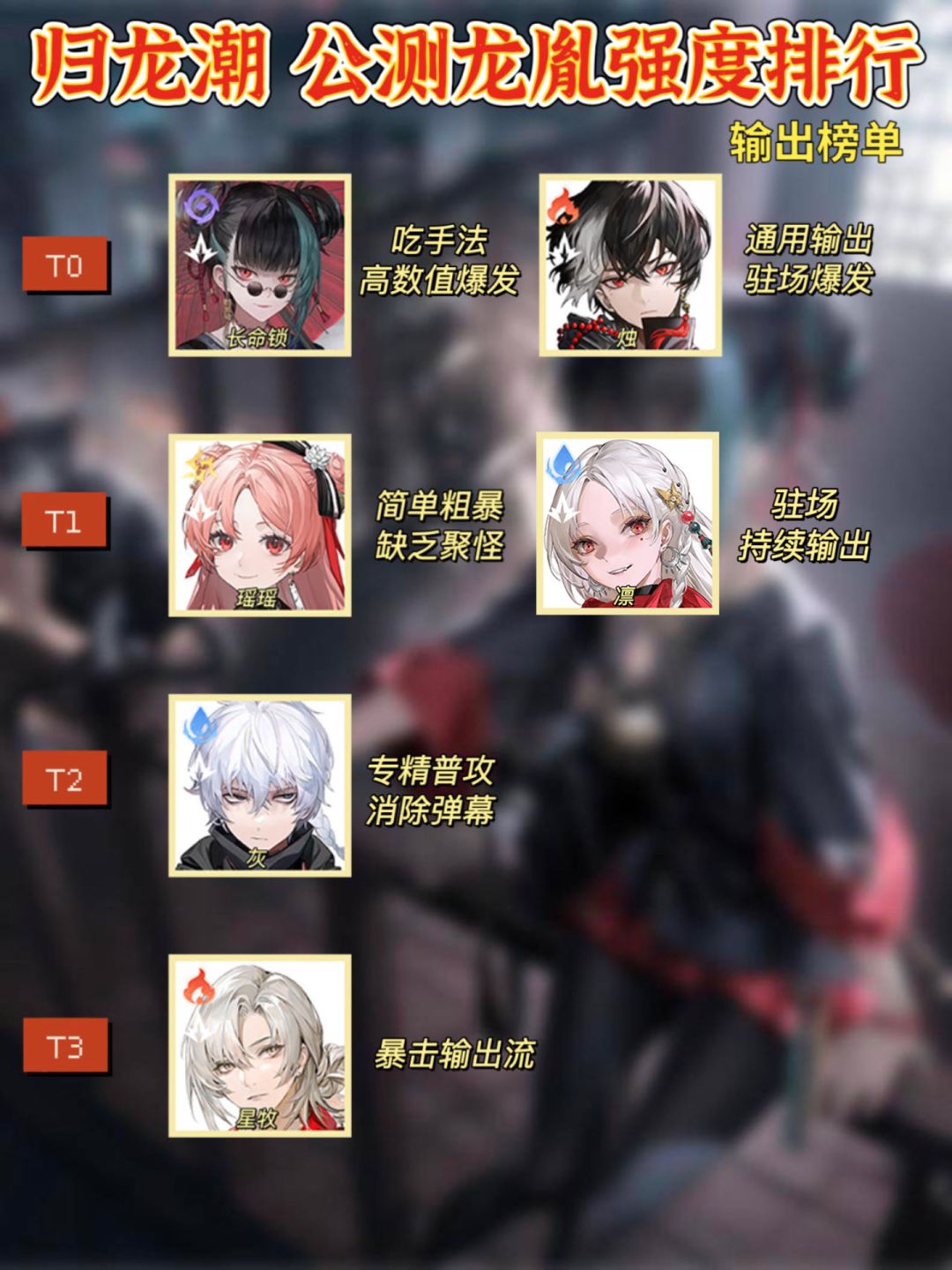 归龙潮角色强度排行榜,奉上!