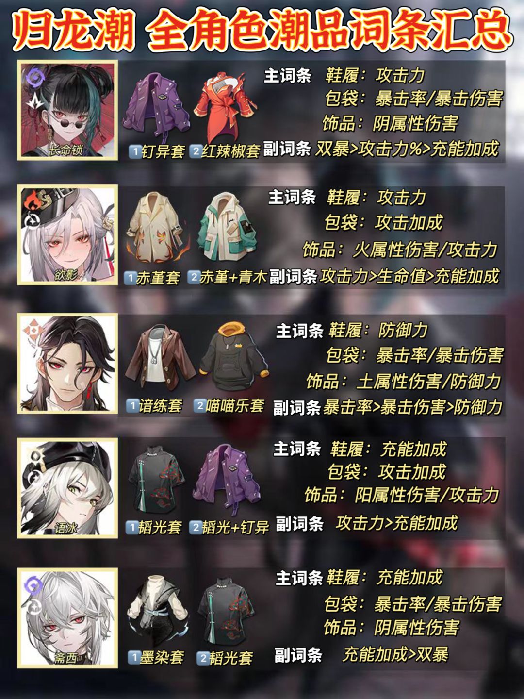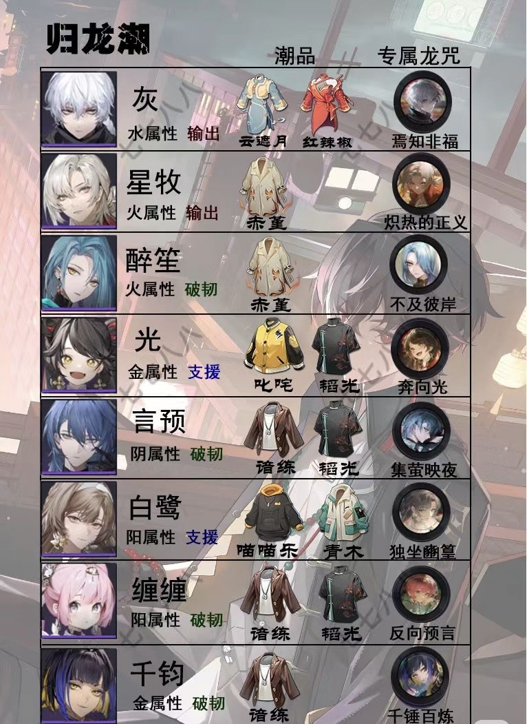 「归龙潮」全角色潮品推荐 毕业词条速查