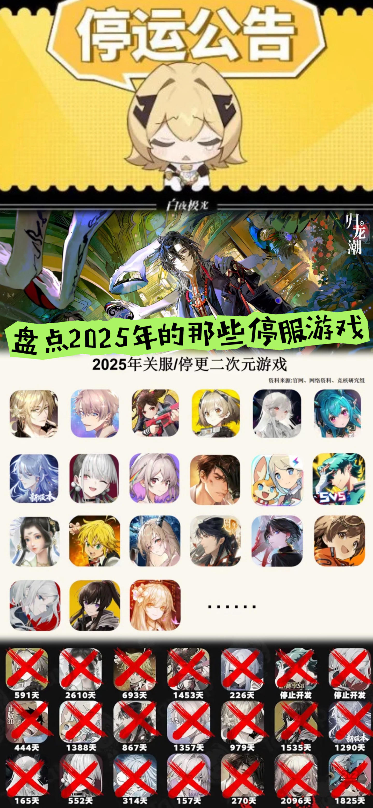 大厂小厂新游老游一起凉2025年的游戏圈,国内知名停运游戏已突破81款,而行业实际停运、下架的游戏数量更是超2000款。腾讯、网易两大行业巨头以各15款的停服数量并列榜首(非官方统一口径,数据略有差异),《归龙潮》《白夜极光》《山海镜花》等玩家耳熟能详的作品纷纷落幕,游戏行业的洗牌速度远超预期。老游戏新游戏一起凉腾讯的停服名单里,既有陪伴玩家多年的老游戏,也有刚上线没多久就关门的新作。运