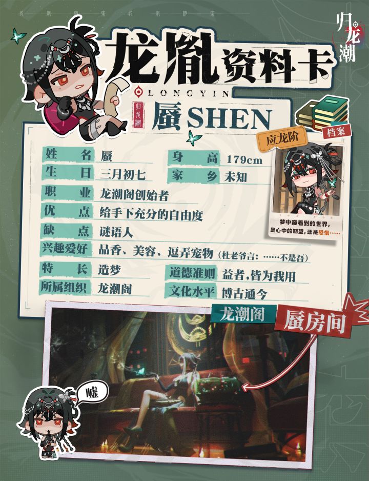 ▶ 下载《归龙潮》【开奖信息】恭喜以下导演在本次活动中获得【随机角色q版徽章】*1~请在5月20日前于TapTap后台填写准确详实的【个人收货信息】,如逾期则获奖资格作废。//「殭」✦龙胤阶位:应龙阶✦龙胤属性:阴✦龙胤职业:破韧✦特性:增伤、阴化“精致的皮囊大都是巧妙的伪装,你猜,里面藏着什么?”————————她称自己的名字是殭,意为自死境归来、无畏死亡之人。沐于血海之中