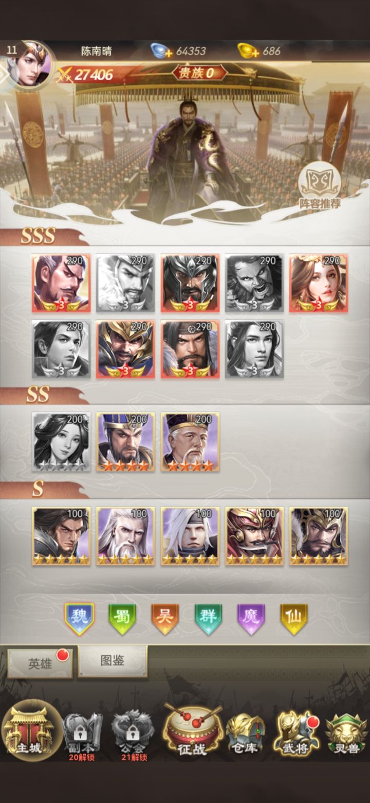 进去点两下就有100多抽了,白嫖可以爽几下,氪佬的游戏,魏国的一下sss快集齐了,18就有120抽,自行斟酌吧