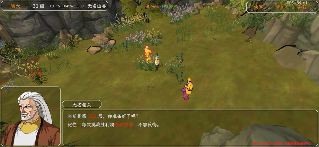 玩了几个小时通关了,,,游戏不错就是太短了,地图也小。希望作者再接再厉把游戏做大做强。跟大家说下心得 第一,记得埋尸体,得到的神功能受用终身。 第二,点自己的墓碑选择不挖尸体,涨资质,影响学武功经验值。这里点个七八次就差不多了,虽然没有数据,但估计点再多后面也一样了。 第三,人物对话,挨着吧地图周边人物都跑一遍,不管是人还是物,能点都都点。(寺庙佛像要点,影响无名窟影子剧情) 第四,升级打怪前期先打熊,狼(都是一次性怪,打完不会刷),后面可在钟什么府哪儿刷经验。,, 第五,比武招亲那个地方房间里面有两个卧龙凤雏,可以刷银两,装备药物。。 第六,关于比武招亲和曼陀谷卡bug的问题,论坛已经有位师兄教了怎么过关,我就不再叙述了。 第七,最后boss通关,把人物站分开,和尚去吃药顶,其余人清小怪