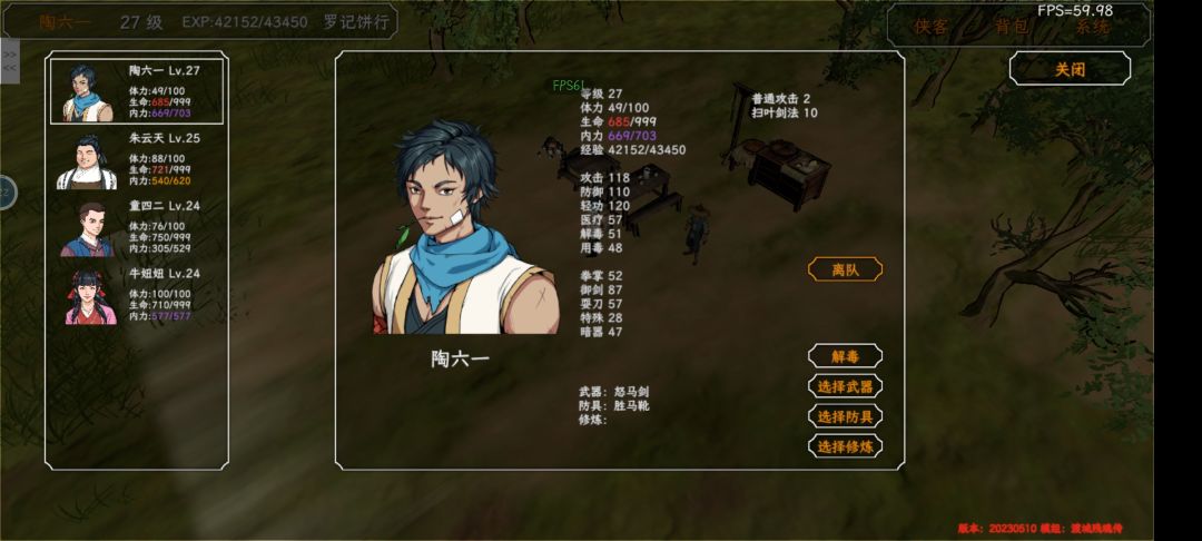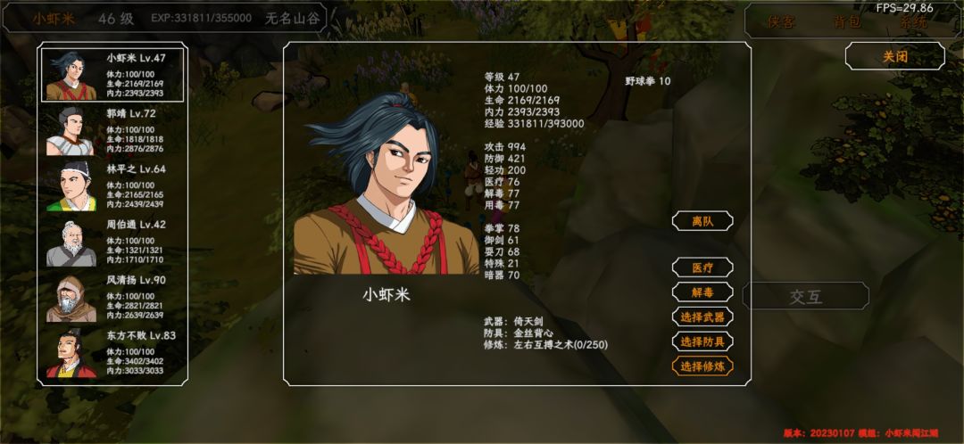 肉鸽模式,野球拳10级肝法,21层肝出 核心思路:野球拳必须打够一定拳数才升级,所以主角必须够肉,且队友伤害不能太高。 开局必拿葵花宝典,保证主角够肉,主角学完葵花给队友学,可以分担伤害,同时队友别学高输出技能(我主要是脸黑) 装备尽量加点防御 最重要的是,能不上人就别上,所以前期经常打不过人,需要载入存档 评论区欢迎交流更好的刷法