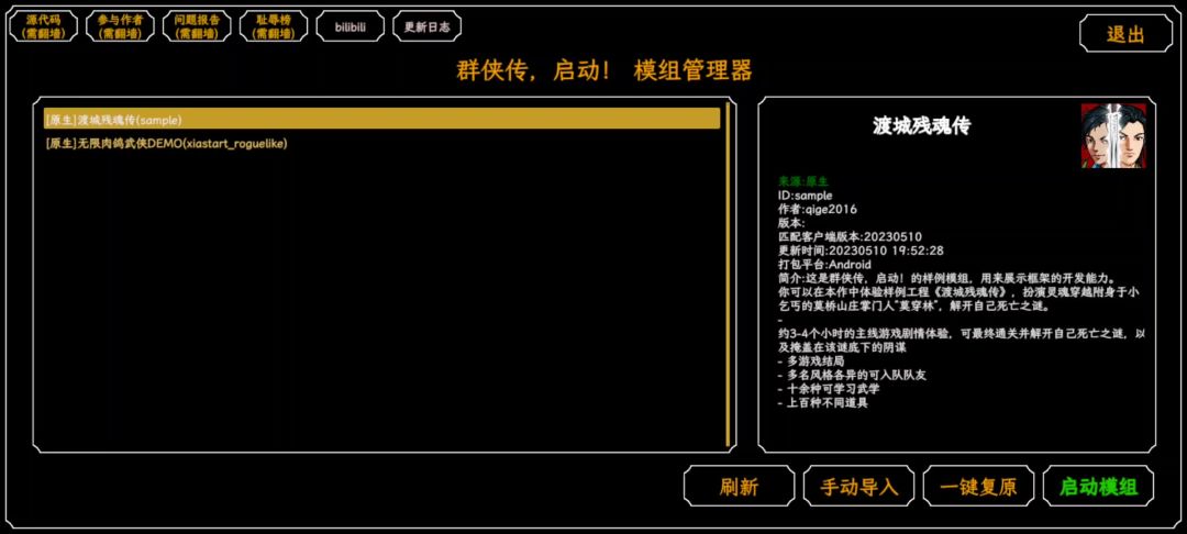 免费无广告、为爱发电的mod启动器———经典武侠RPG致敬之作【群侠传,启动!】