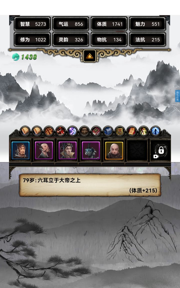 但说实话那些都是刷完天赋 点点点 看个乐子 很快就死了再重生 有的游戏因为剧本少 每局人生重复太高就很无聊 更有的甚至有付费的自动播放模式哈哈 连点都不需要了(笑) 我也联想不到选择和结果的因果 经常莫名其妙暴毙 他们的玩法更多的是需要达到某种条件才能活下去 越久越好