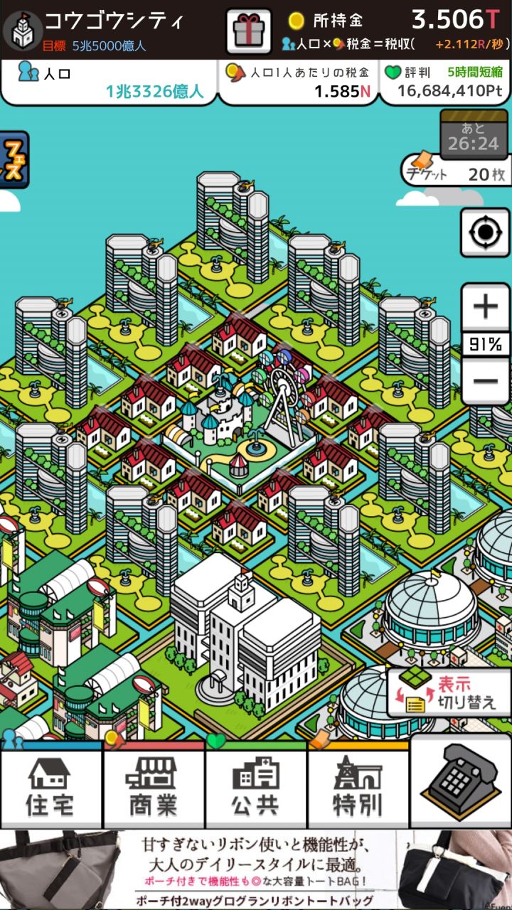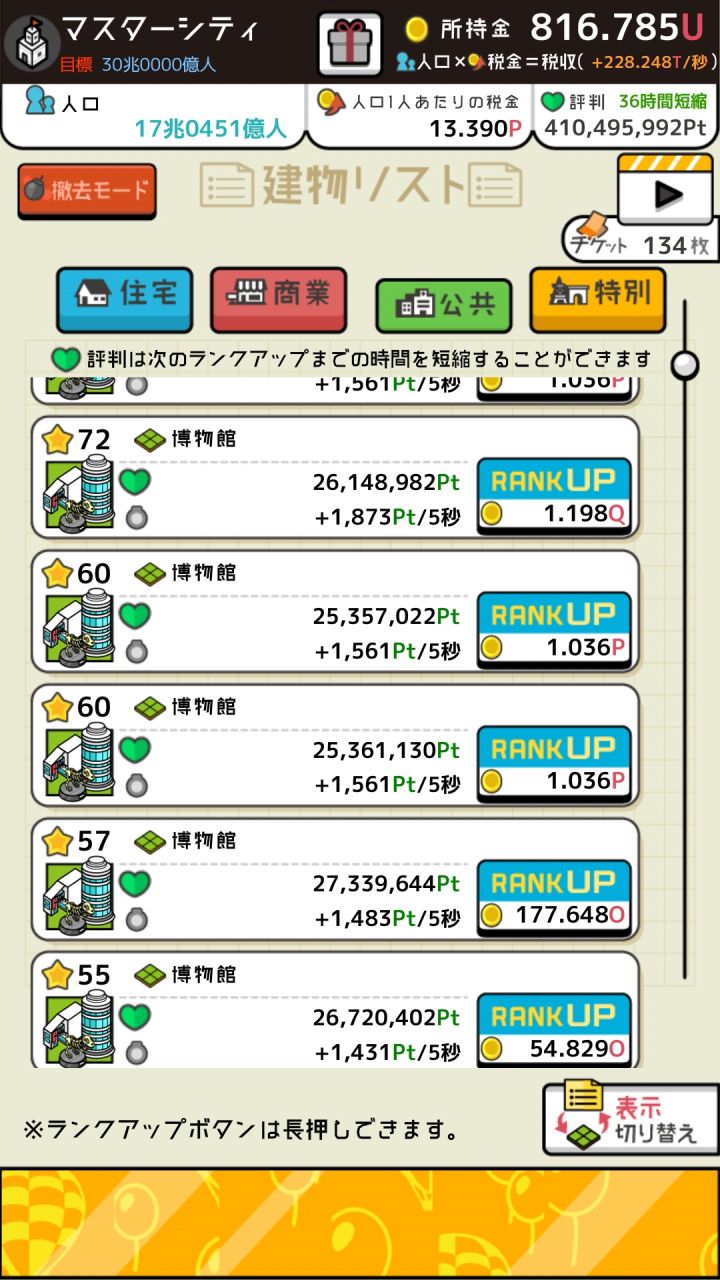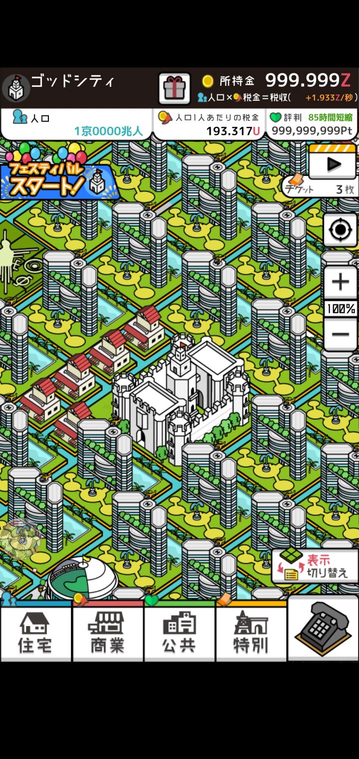 本人不是点击党,手比较残,所以就是靠时间,但是时间宝贵,所以分享一下咸鱼快速通关攻略。前面的话就是努力解锁新的建筑,解锁了一面积最牛逼的建筑就全部建一面积的,我全都是建房子和医院,商业的话只要一个单位就可以了,因为全是一单位的,所以升级金钱很便宜,够用。医院的话大概要建个1/3,升级的话可以一直按着升级键就会一直加等级,要是一下一下点的话手估计要断。等你口碑攒到了减少二十小时的时候,你就可以换