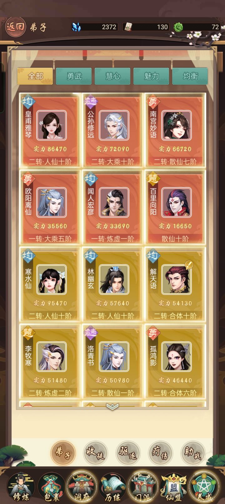 游戏一直在玩,中间手机突然黑了等了一个多星期才到新机,道法没提升多少一直在囤,一年多红色弟子还是没满,一直用牌子到现在才开出六个红色,太难了。。。。因为这个农场今天测试结束才下回这个软件看看什么时候能在继续玩。。。