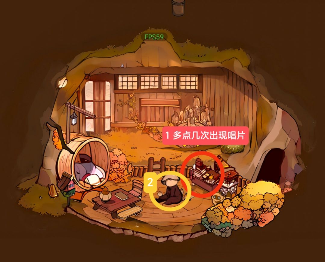 点收音机旁边的小长桌,出现祈雨之音唱片(需要多点几次才出现),之后再点击蘑菇人。