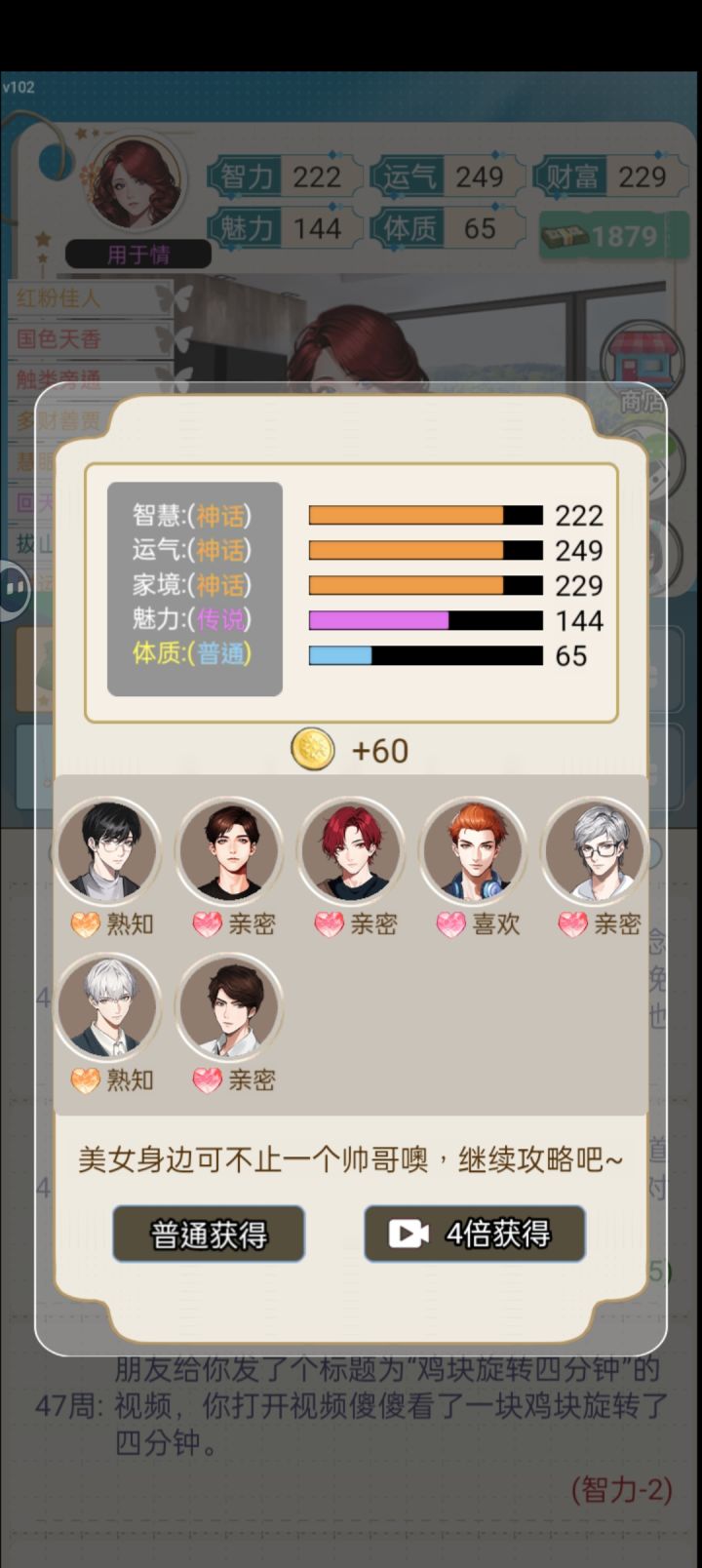 最后只剩两个男生没攻略成功,因为我不小心选错了,后悔莫及,又开了第三把,等后续攻略成功我再来评论一下。