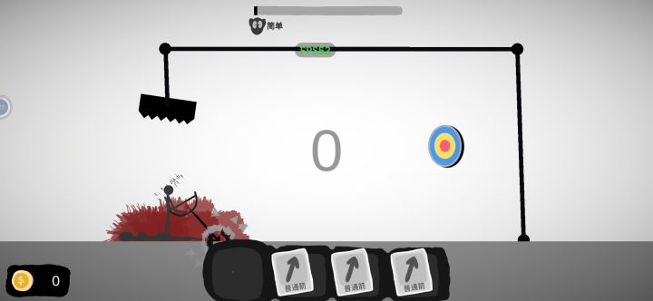 策划用比较真实的物理引擎为我们打造了一个射击游戏,以一个弓箭手为主角,通过控制角度与方向击中靶子.如果穿破了所有保险绳主角就被上方的尖刺扎死,死亡时有搞笑的音效,而下一次重开就可以发现前几辈的遗体都躺在地上起不来了😂.每次在击中靶子后都可获得相应的金币,金币在主角死亡后的界面中购买保险绳,还有网上的热梗装扮.靶子不仅是有普通靶,还有穿透靶以及多靶等.在创意这一方面做的比较好😘.