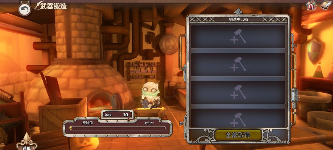 【锻造】 店主可以使用素材和金币,锻造出各种各样的武器。 武器锻造栏 锻造武器会使用到一个锻造栏位。点击栏位后会进入锻造选择页面,确认锻造后,锻造栏会列出剩余的需要时间,当时间完成后便可以取得武器。 熔炉经验值 每把武器在首次镀造,或是首次成功锻造出最高品质时,都会增加熔炉经验值。当熔炉等级提升后,便能解锁更高等级的锻造。 【武器】 在战斗中角色常用的攻击手段,每种武器都有着各自的特性。 耐力 使