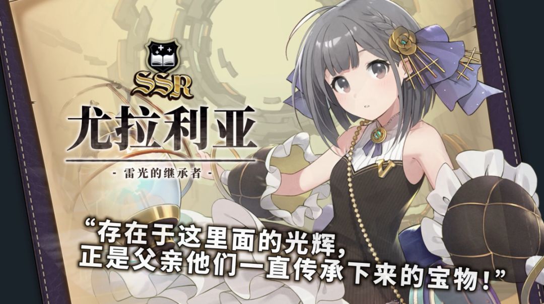 存在于这里面的光辉,正是父亲他们一直传承下来的宝物! 全新SSR店员「雷光的继承者·尤拉莉亚」登场! 职业:书 特色:灵活运用雷芯的电队辅助;同时保护队友及触电敌人;强大奥义将敌人集中至火力区。