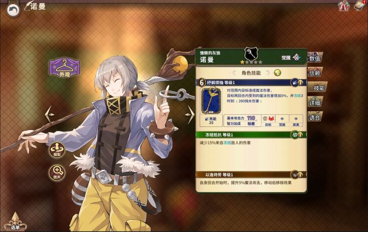 店主们早上好呀~今天带给大家分享一位R稀有度的法师,能增加魔法伤害的诺曼。 R 诺曼(法师) 主线推荐度:★★★☆☆排名战推荐度:★★★★★(Boss战中可以用3至4位法师造成高额伤害)PVP推荐度:★★★☆☆ 奥义“纾解烦恼”施放时对范围内目标造成魔法伤害,并且使目标两回合内受到的魔法伤害增加(满级时15%),也冻结目标造成200纯水伤害。技能“冻结抵抗”可以减少来自冻结敌人的伤