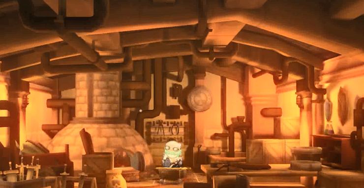 铁匠的日常工作当然是锻造武器。 全神贯注于工作中的赫利德偷偷溜进了铁匠铺,甚至没有注意到前来拜访的谢罗迪的存在。
