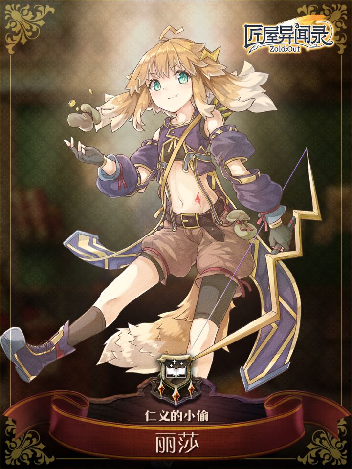米米:偶的钱包呢((找找找)丽莎:喔这是你的吗?米米:是喔是喔,你人真好<3丽莎:刚才见你是难得是有穿衣的小鸡,以为是帮有钱人打工的,没想到钱包内没几个钱,还给你好了米米:…真的谢谢你…原来偶的薪资低也有优点-----------名字:丽莎称谓:仁义的小偷专属武器:弓希有度:★★★#匠屋异闻录 #发现好游戏