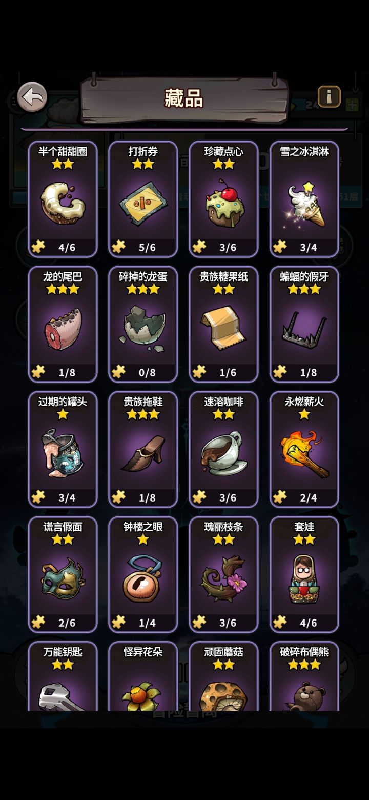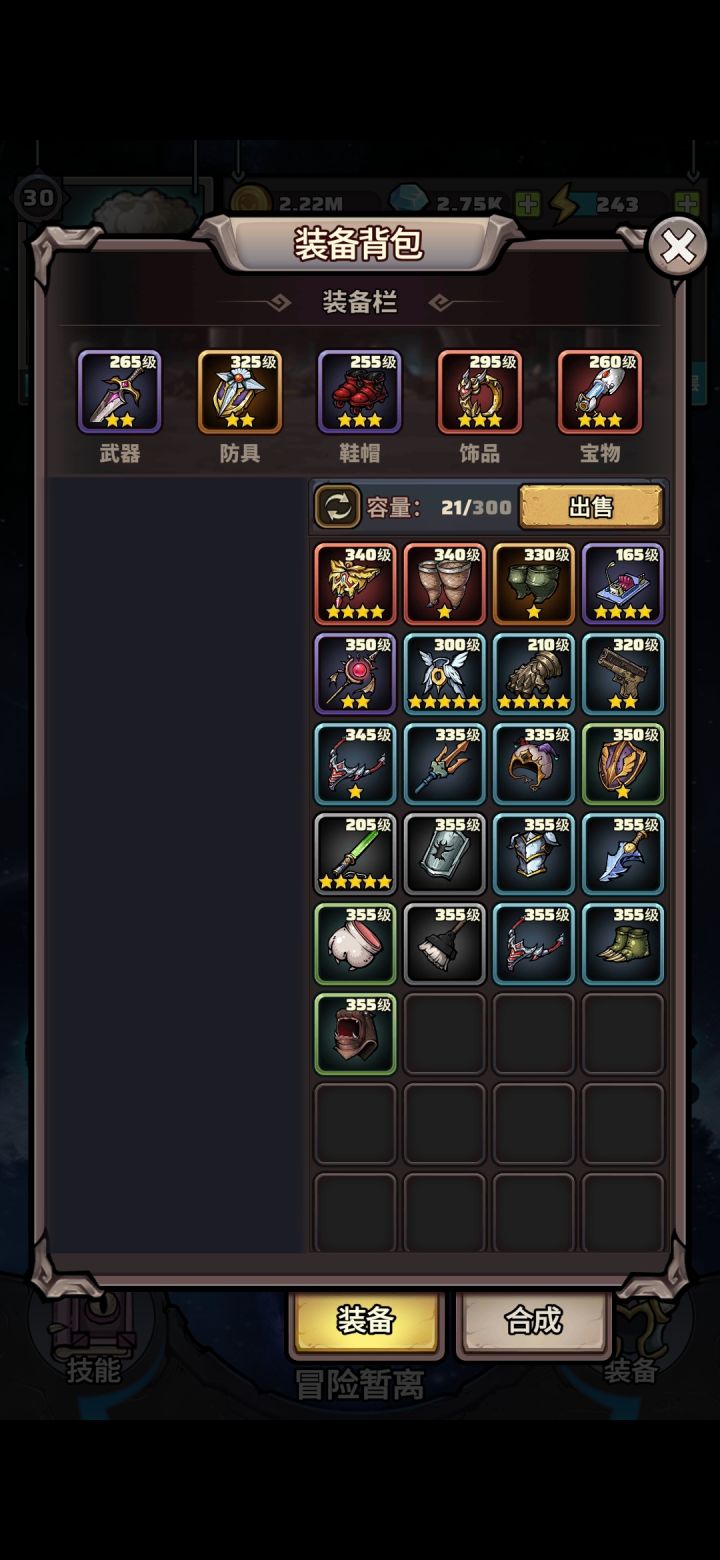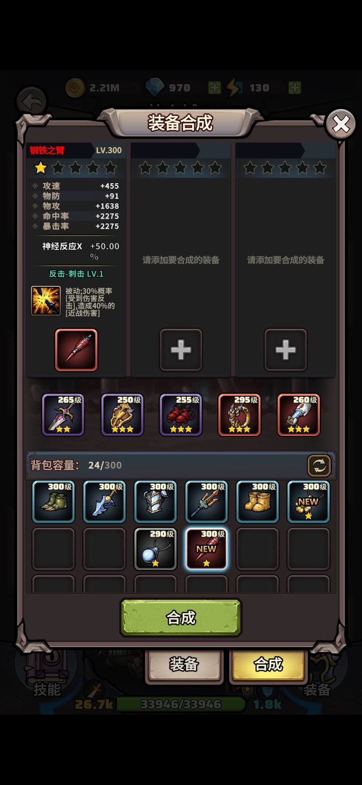 只有一个紫色英雄没满星,藏品还能继续提升。300级以上装备可以出50的神经反应,目前还没合出双50的装备,马上就进最后一个本了,这次试玩感觉就玩了个装备模拟器,刷装备合成占了99%,其他游戏性占1%。