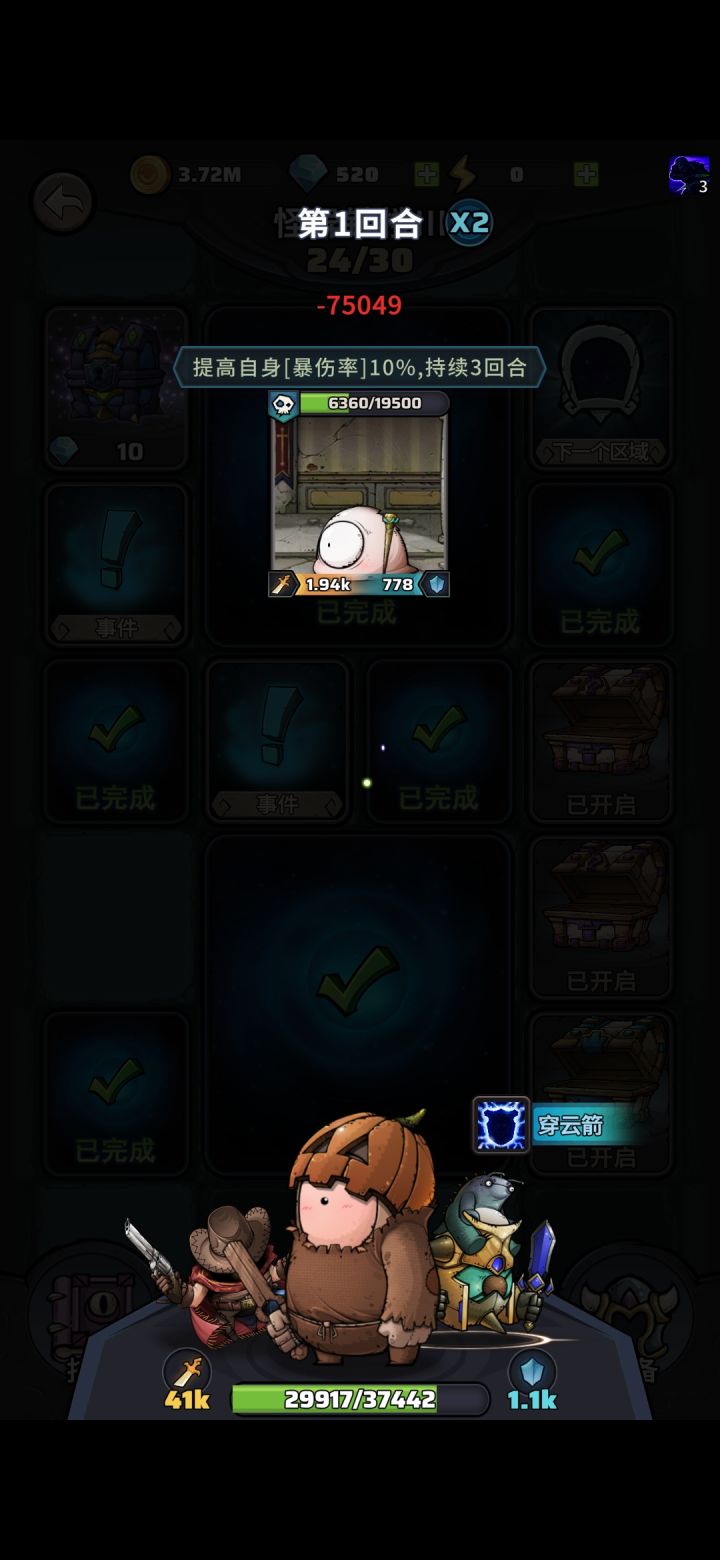 如果要快速通关,只要把词条一股脑堆神经反应就可以了。不管是装备,还是每5层的三选一。肌肉=血量,神经=攻击力,精神=攻击+防御平均加。角色技能方面推荐穿刺攻击,比近战或者法术伤害高。装装备方面,三个零星装备合成一个一星装备,以此类推。一个低等级和两个高等级装备,合成的装备会跟随低等级装备的等级。钻石优先开箱子,金币直接买装备。装备等级每五层增加五级,所以装备每五层合成一次。虽然图里有神经