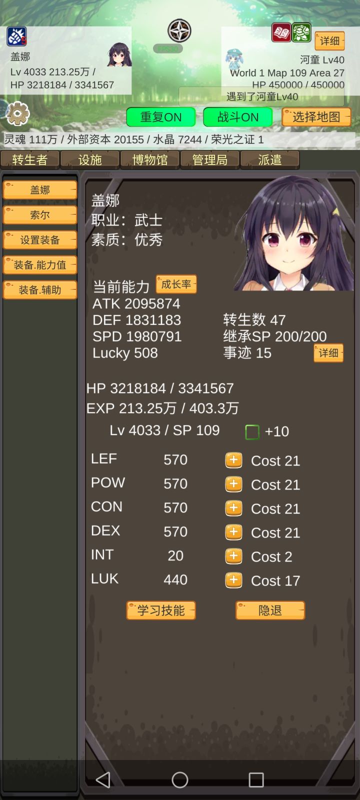请问大佬们 最下面两个属性 幸运和智力是不是物理系单加幸运魔法系单加智力就行了啊🙈刚第三转 属性加成水桶 快速个五六次之后 就5000+的战斗不能了 这可咋整啊