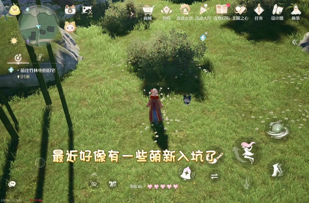 总结一些大家常问的基础问题,如果没有可以在帖子里直接问(慢慢做图ing) 🍀1.搜集地图工具→TAPTAP无暖论坛主页就可以看到,优先做主线任务 🍀2.兑换:到达搭配师协会达达赠予美鸭梨,点击,设置→其他→兑换码(平时复制的兑换码可能存在空格,注意删除空格后兑换) 右上角功能 🍀3.跳跃漂浮:后退几步助力,长按跳跃键(实在不会就在美鸭梨的设置中开启跳跃辅助线) 👉其他技能(捕捉、刷毛):对于敏感动