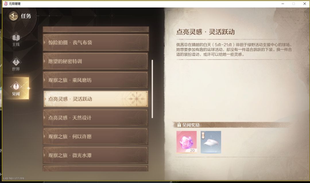 无限暖暖【见闻任务】-点亮灵感·灵活跃动