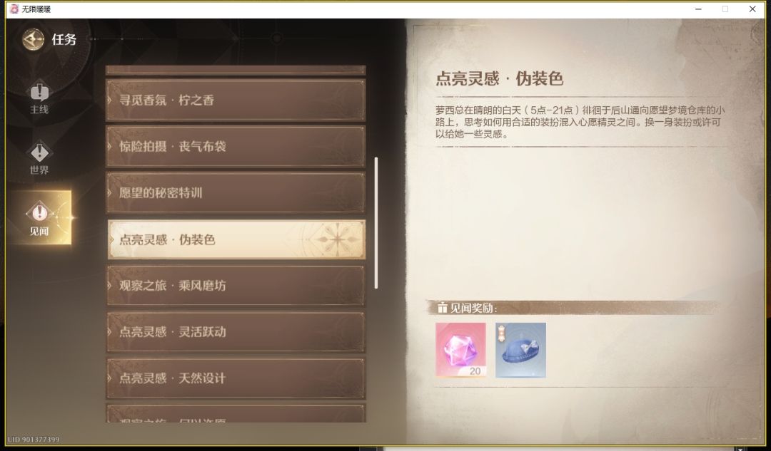 无限暖暖【见闻任务】-点亮灵感·伪装色
