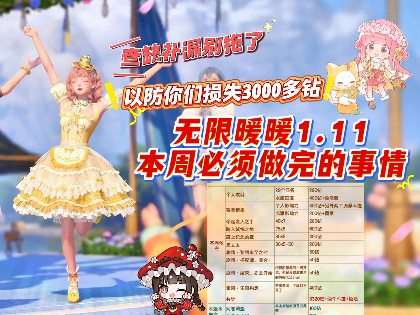 无限暖暖1.11本周必须完成!别拖了3K+钻呢