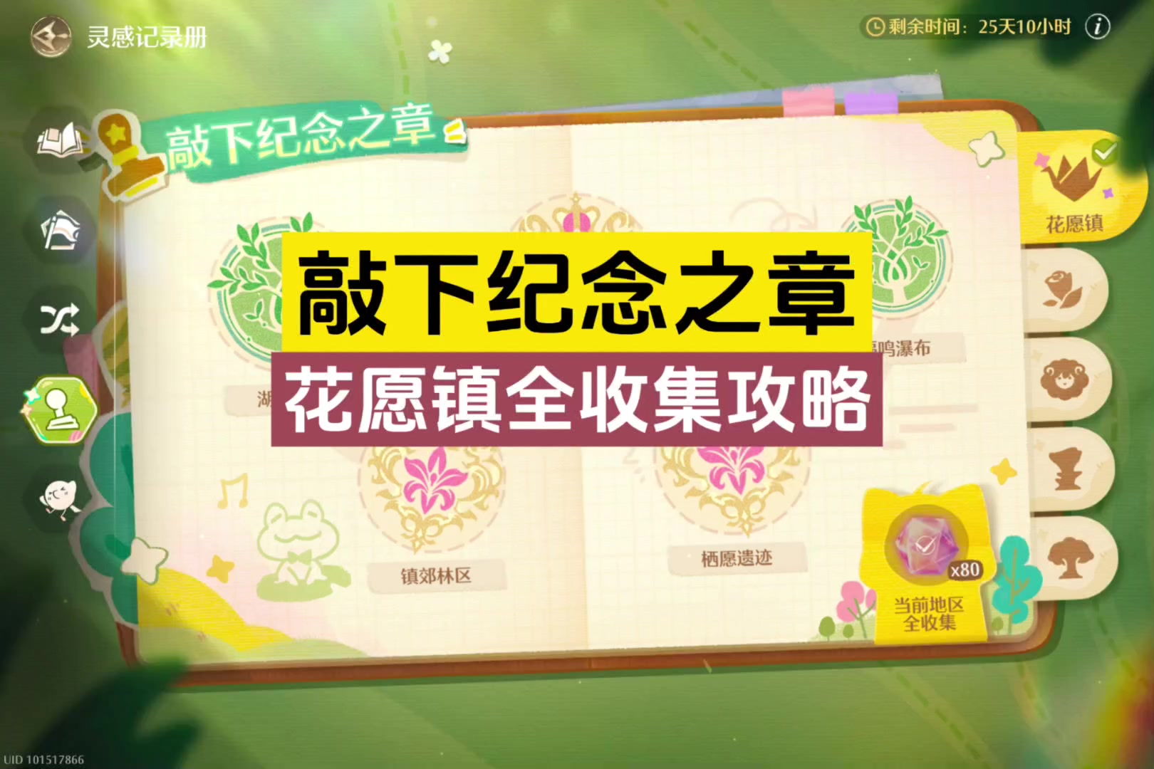 敲下纪念之章,花愿镇全收集攻略