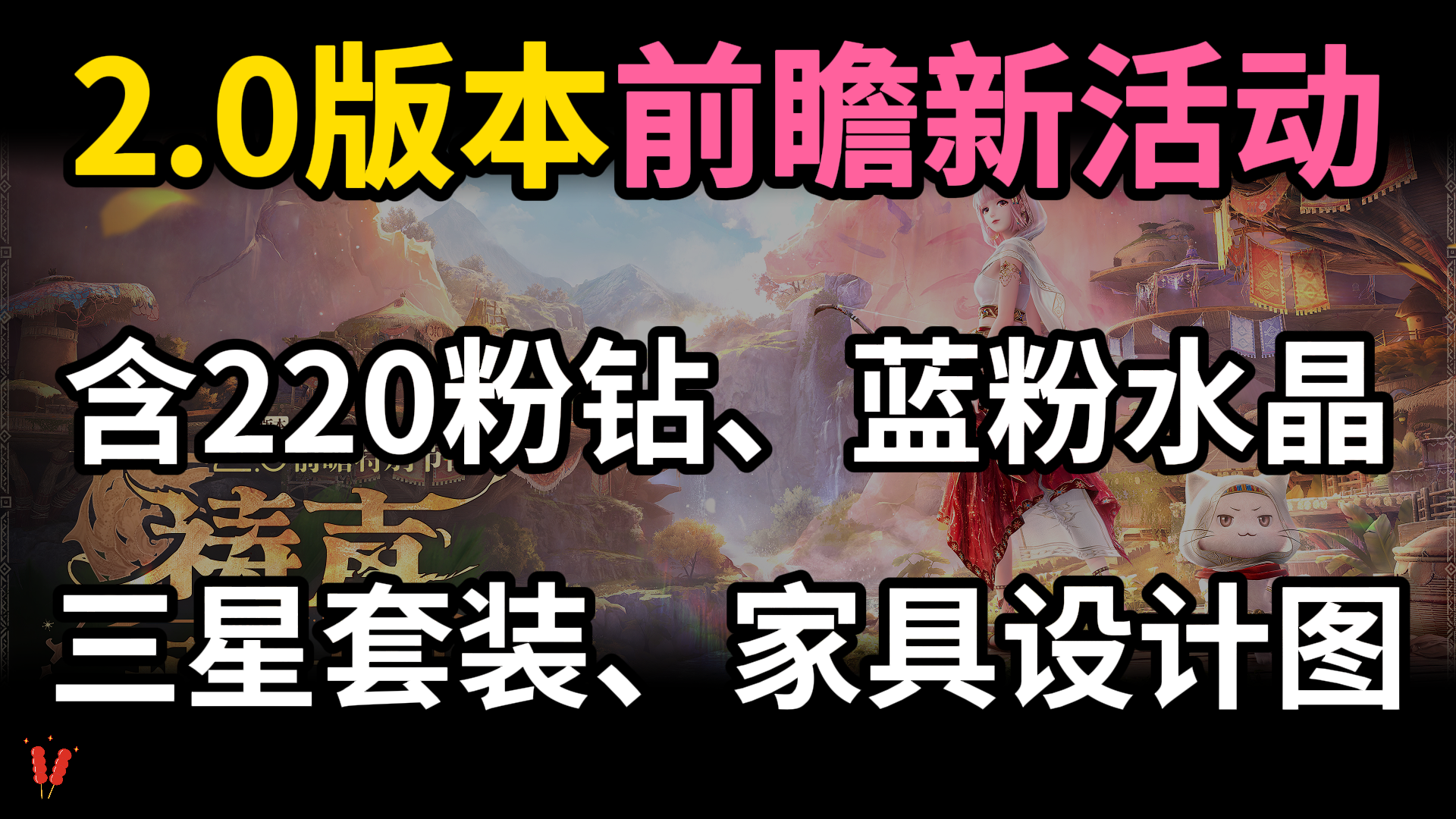 2.0版本前瞻最新活动,220粉钻+蓝粉水晶+三星套装+家园家具。