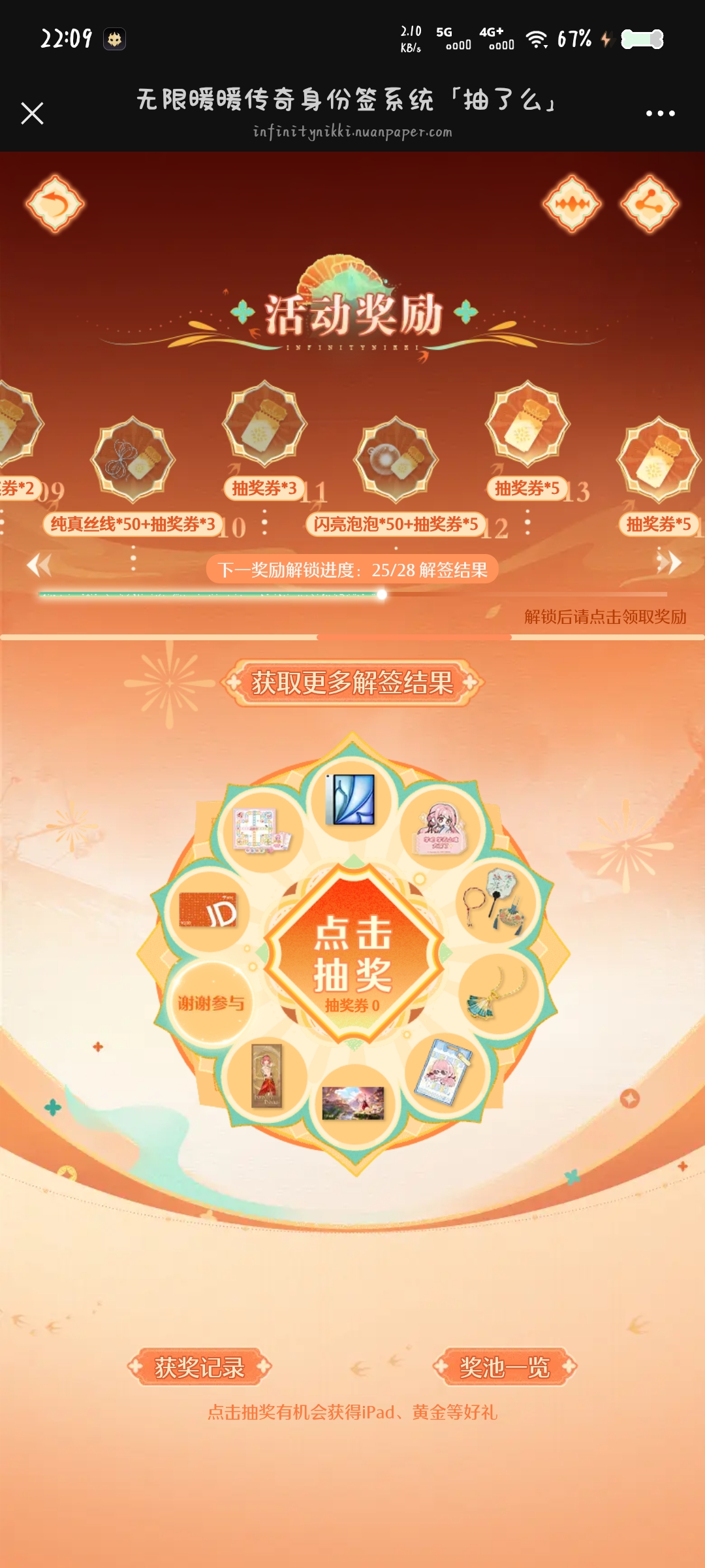 我很好奇这个有人抽到奖励吗,二十多抽全是谢谢惠顾