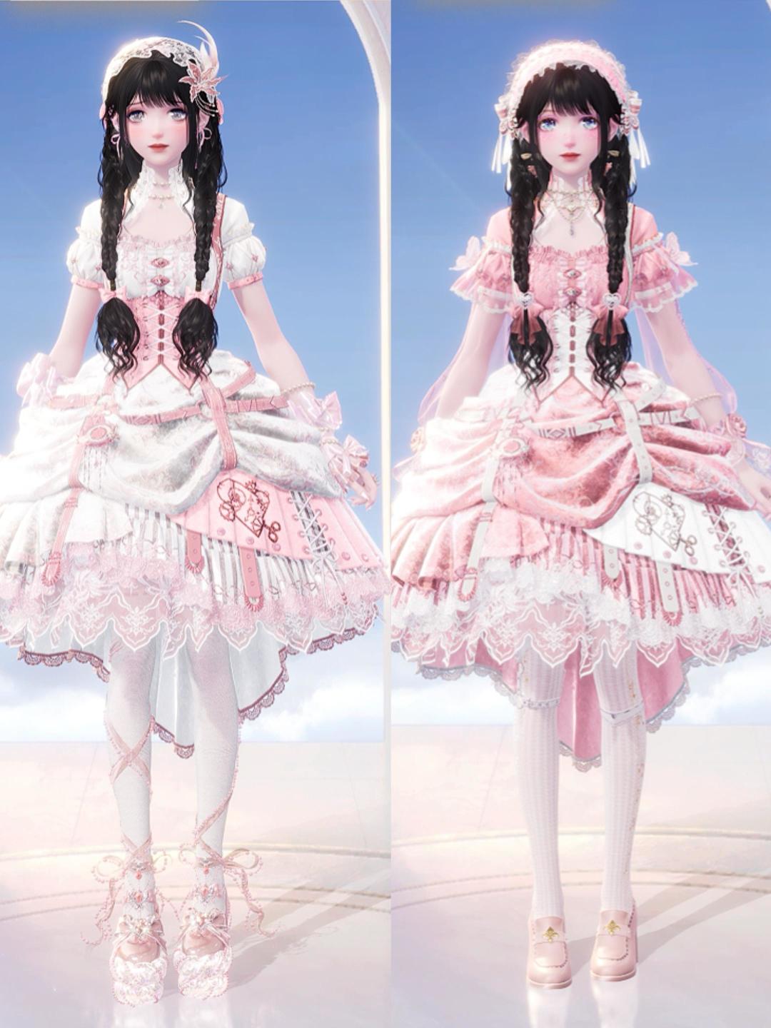 #无限暖暖 #无限暖暖嘘森林不必听 非常美丽的版型,直接就是染两套!粉白永远的神