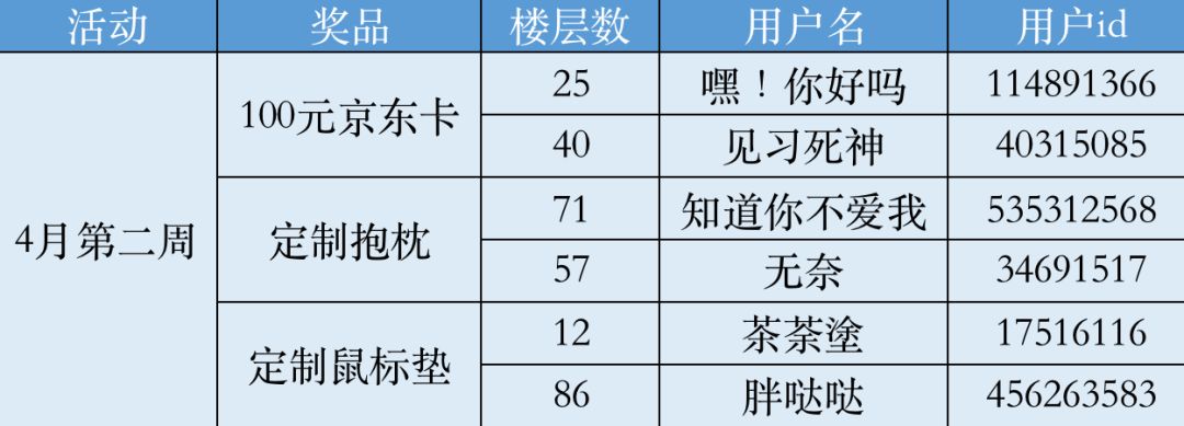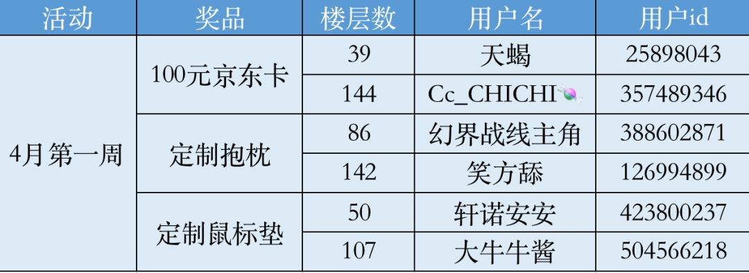 开奖帖丨【四月第二周】预约活动获奖名单补充