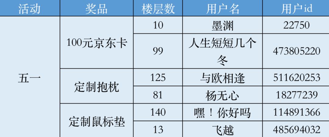 虽然假期已经结束了 但我放假的心还没有回来... 而且更是因为那一天调休变得更累了呢.. 啊,生活,你像咖啡一样苦。 算啦不多说啦, 直接开奖吧。 截至5月4日,总回帖层数为163楼。从2楼开始算; 随机数生成器随机抽取了六名幸运儿,结果如下 对应的楼层与论坛id分别是 恭喜各位。 其中, 99楼删帖,顺延到102楼;140删帖,顺延到141楼。 好啦,请中奖的梦想家们请添加工作人员QQ号:300