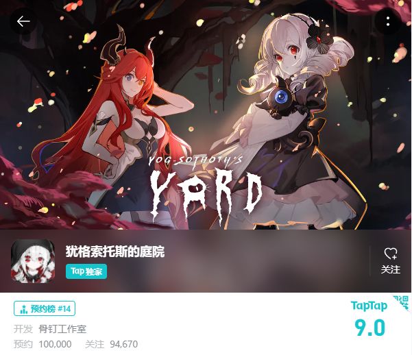 感谢大家的喜欢和支持,我们小破游《犹格索托斯的庭院:炼金旅社》(Yog-Sothoth’s Yard)TapTap预约破10w啦! 来自热心群友优雅而精准的截图! 真的真的真的很感谢大家的支持,《犹格索托斯的庭院》的PC版demo在前段时间放出,我们几个人收到了很多有建设性的意见和反馈,当然也有很激烈的批评(在做了在做了),包括存档、UI、剧情、模拟经营功能等在内的BUG和操作体验等光是群里收集的