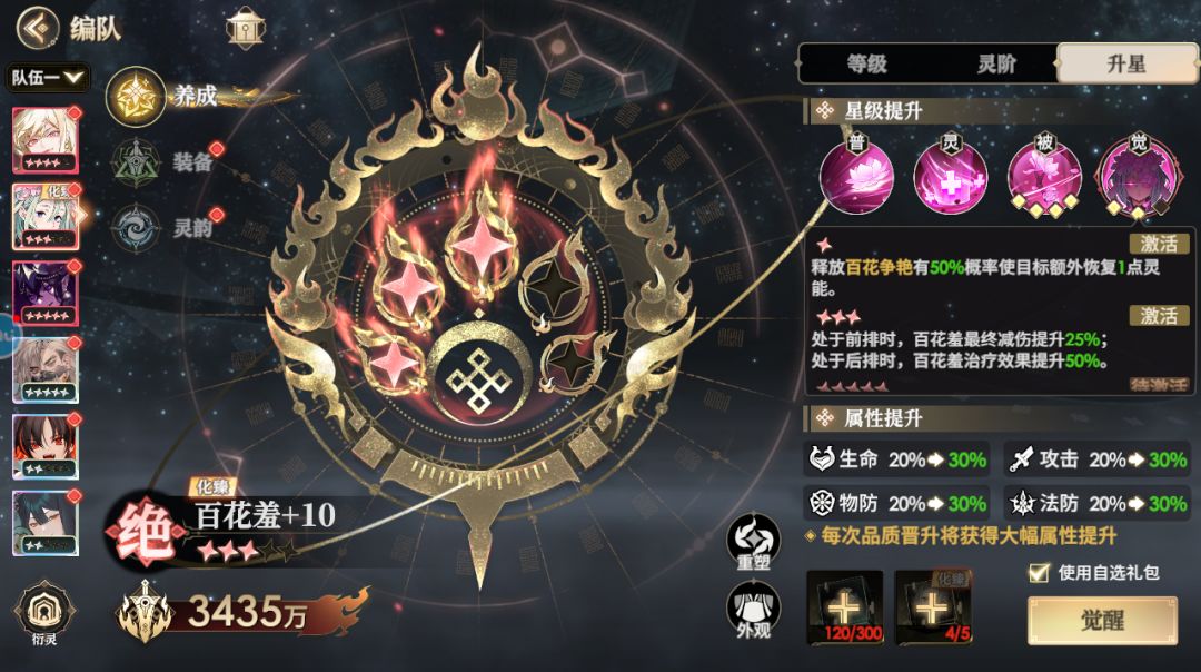 本期是深渊断罪为大家带来的是以百花羞相关的阵容推荐, 希望能对各位小伙伴的游戏之旅有所帮助。 *百花羞和奎木狼连携不再强制互绑,与奎木狼刚需百花羞不同的是,百花羞并不刚需奎木狼,完全可以独立构建阵容。 百花羞特点分析 因为百花羞为治疗类型衍灵,所以注定不能作为主C培养,但是其治疗+回能+增益的多重辅助能力使她能在阵容中发挥至关重要的作用。百花羞特点 1.奇特的治疗机制 2、根据不同站位获得不同属性