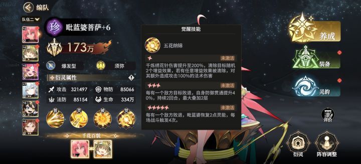 这贴的起因是之前发了个持国单拉的帖子,很多人问我后续怎么配队,怎么说呢,因为新出了嫦娥,我就拿号去测试强度去了,所以阵容也就拐到四天王了,四天王加嫦娥,五个九霄压力拉满,但差不多现在算逐步成型了(有想法可以看我主页之前的持国单拉过渡贴)我现阶段阵容为,嫦娥,玉女,四天王(少个南天王),飞天玉女是一觉开局挂三个连结的,也能开局刷次技能次数,带个回能灵响三回合两个大也挺好的,飞天羁绊毕竟是使用次数